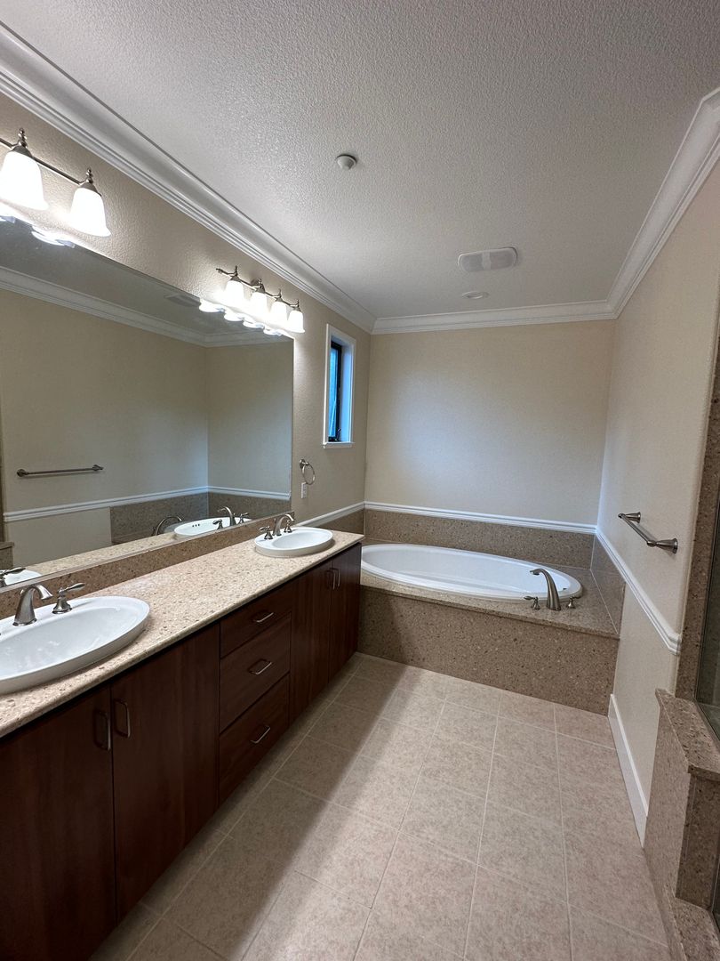 Primary suite has two walk in closets (also fully finished with California Closet units), AMAZING ensuite bath with tub and shower and of course, double sink.